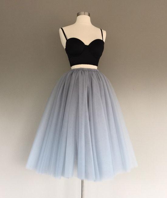 Two Piece Black Top and Grey Tulle Homecoming Dress,Party Dress