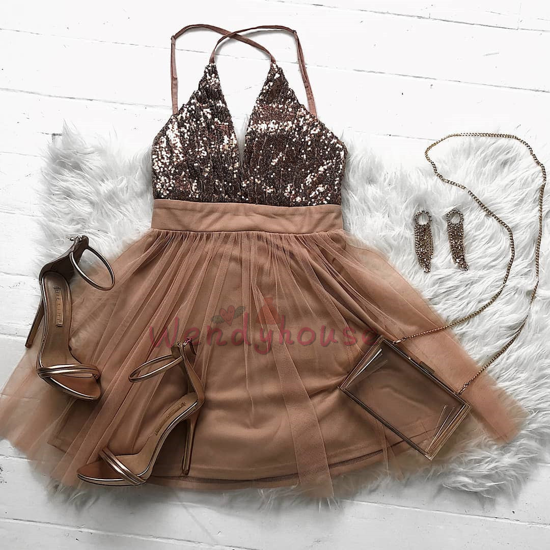 Sparkly Rose Gold Short Prom Dress,Party Dress