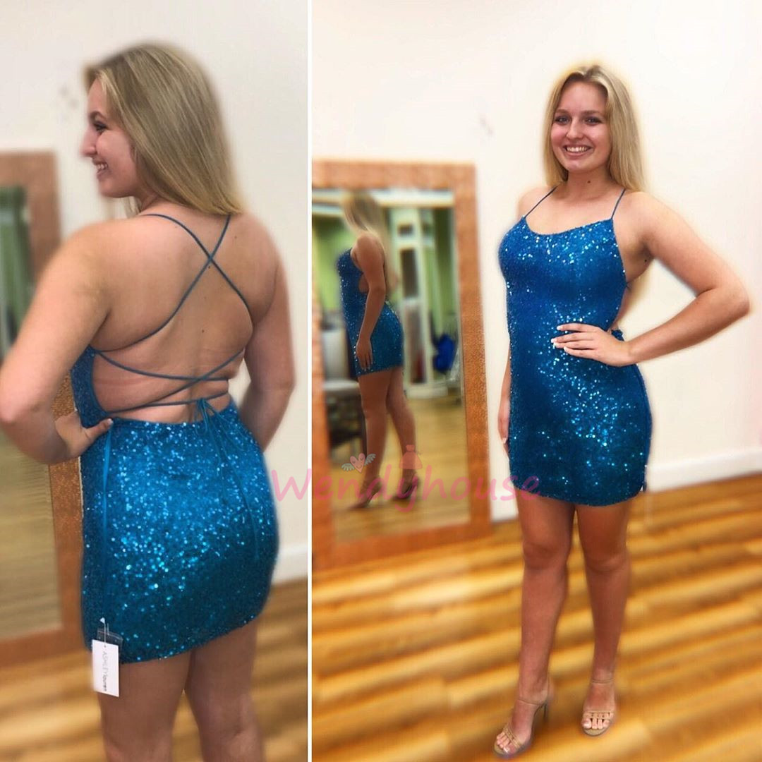 Sparkle Blue Sequins Tight Short Homecoming Dress