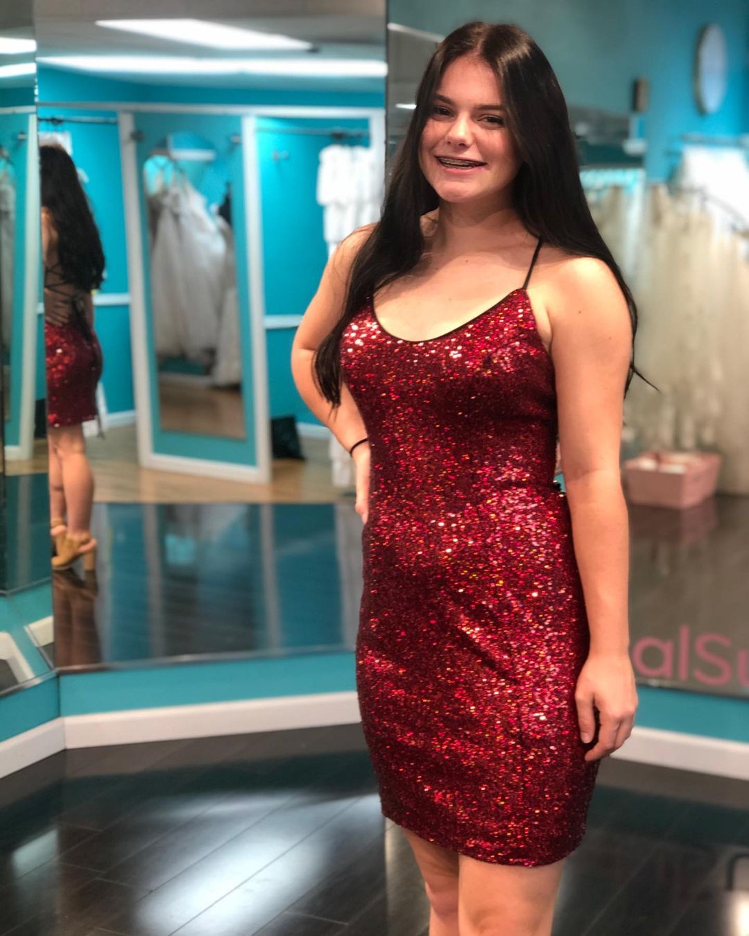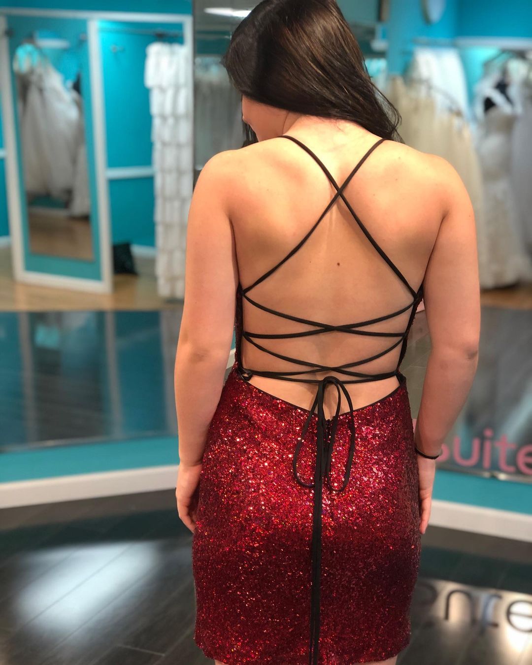 Wendyhouse sparkle burgundy sequined tight cocktail dress