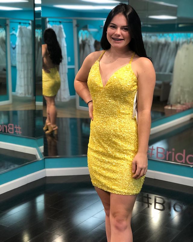 Wendyhouse glitter yellow tight hoco dress party dress.