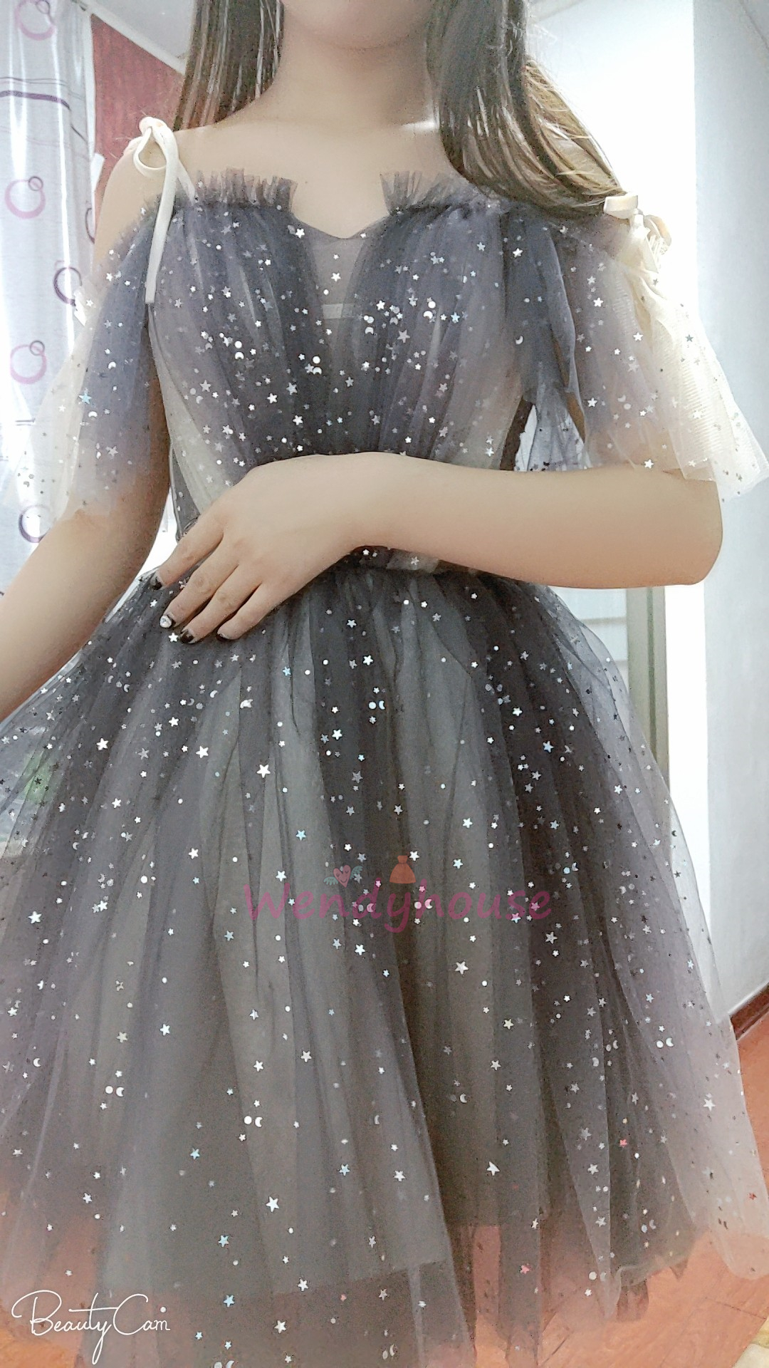 Wendyhouse sparkle A-line short navy party dress with gold stars.