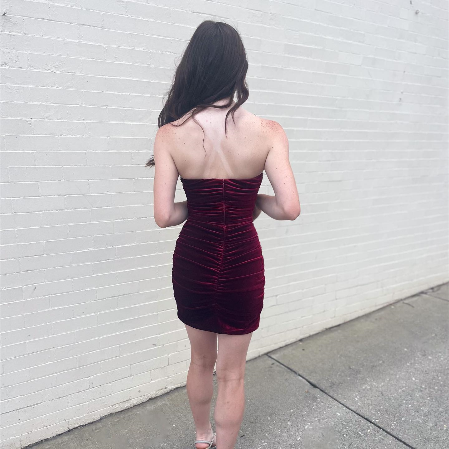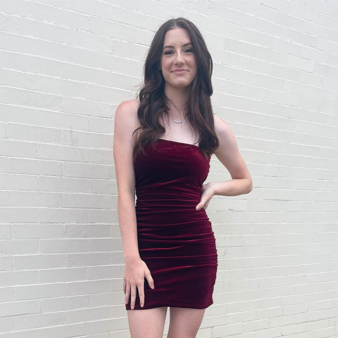 Burgundy Strapless Velvet Sheath Homecoming Dress