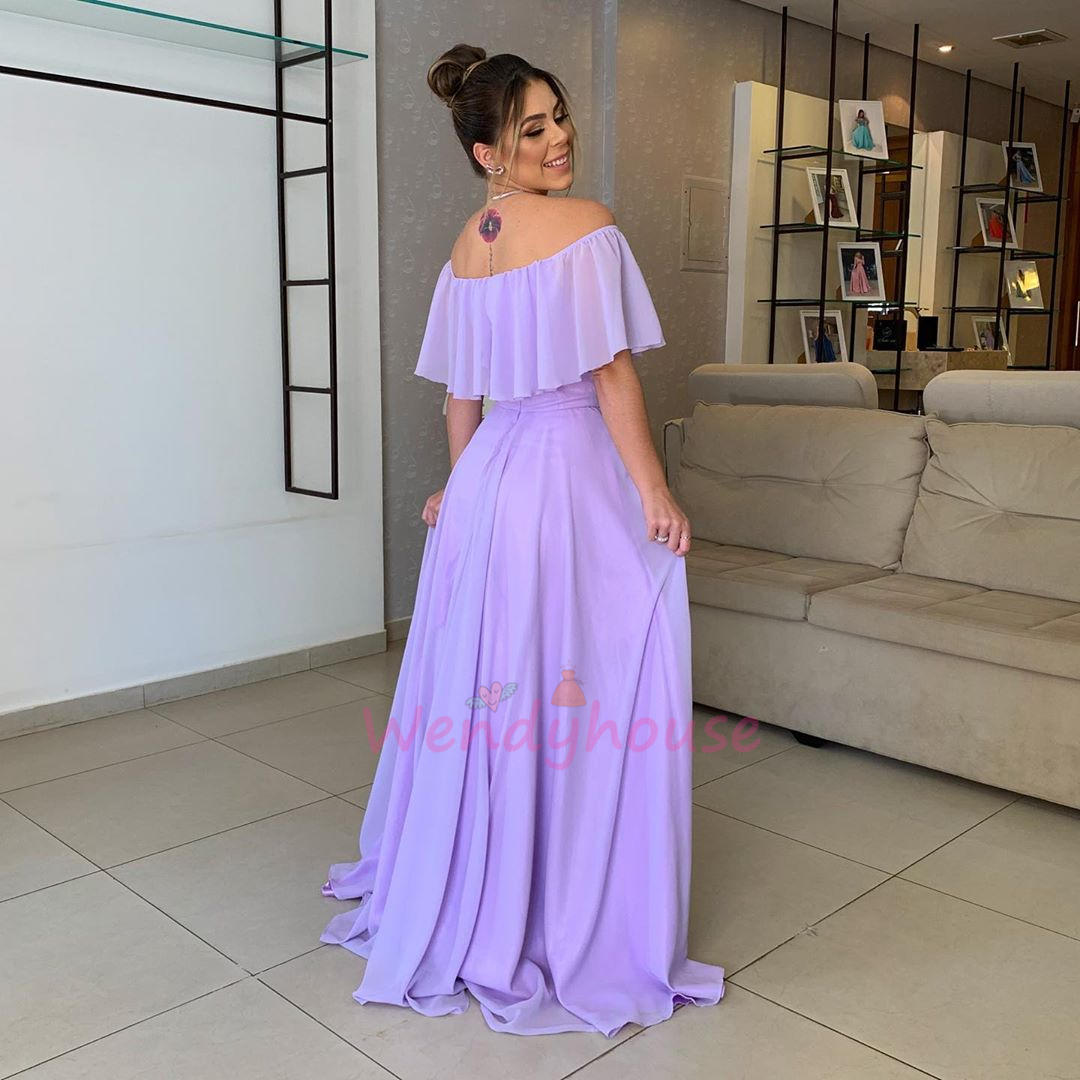Off the shoulder blue chiffon long formal dress with sid slit