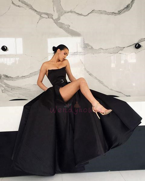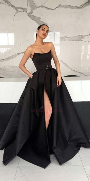 Burgundy Strapless Long Prom Dress with Pockets,Front-Split Evening Formal Dress