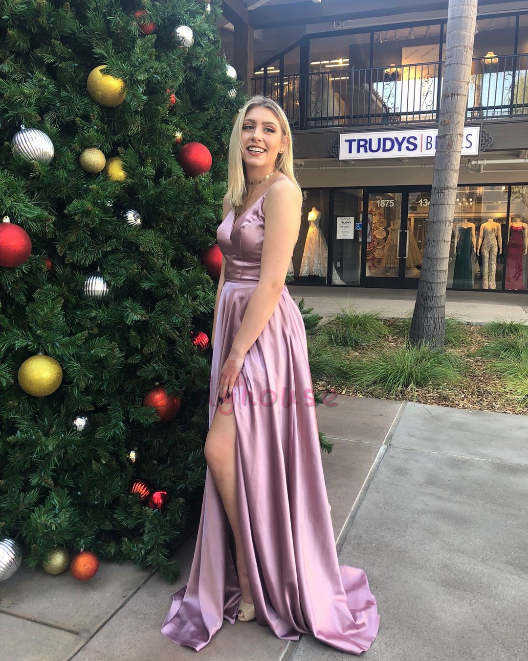 Dusty Pink Long Prom Dress with Side-split,Floor Length Evening Formal Dress,Prom Dress with Criss Back