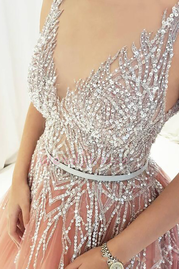 Luxurious Pink Floor Length Prom Gown,Evening Formal Dress,Prom Dress with Sequins