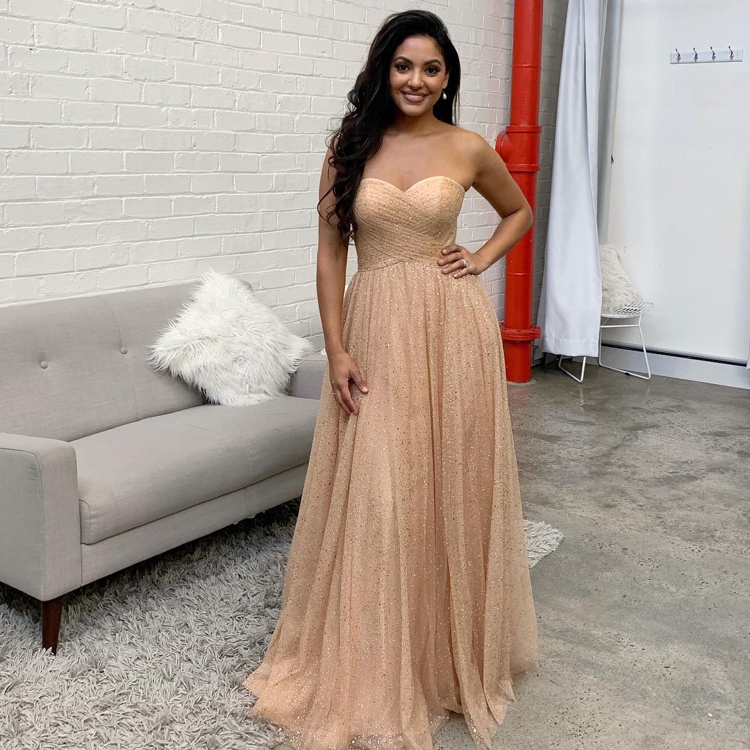 Glitter Sweetheart Champagne Tulle Long Party Dress