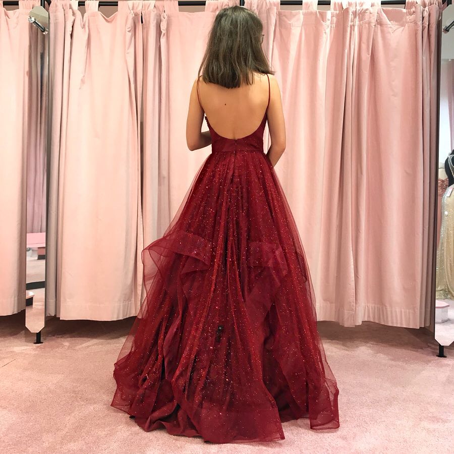 Spaghetti Straps Red Long Prom Dress, Sparkle Red Long Ball Gown Graduation Dress