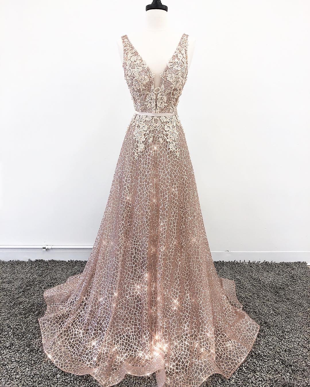 Sparkle Rose Gold Formal Dress, Sparkle Long Prom Dress