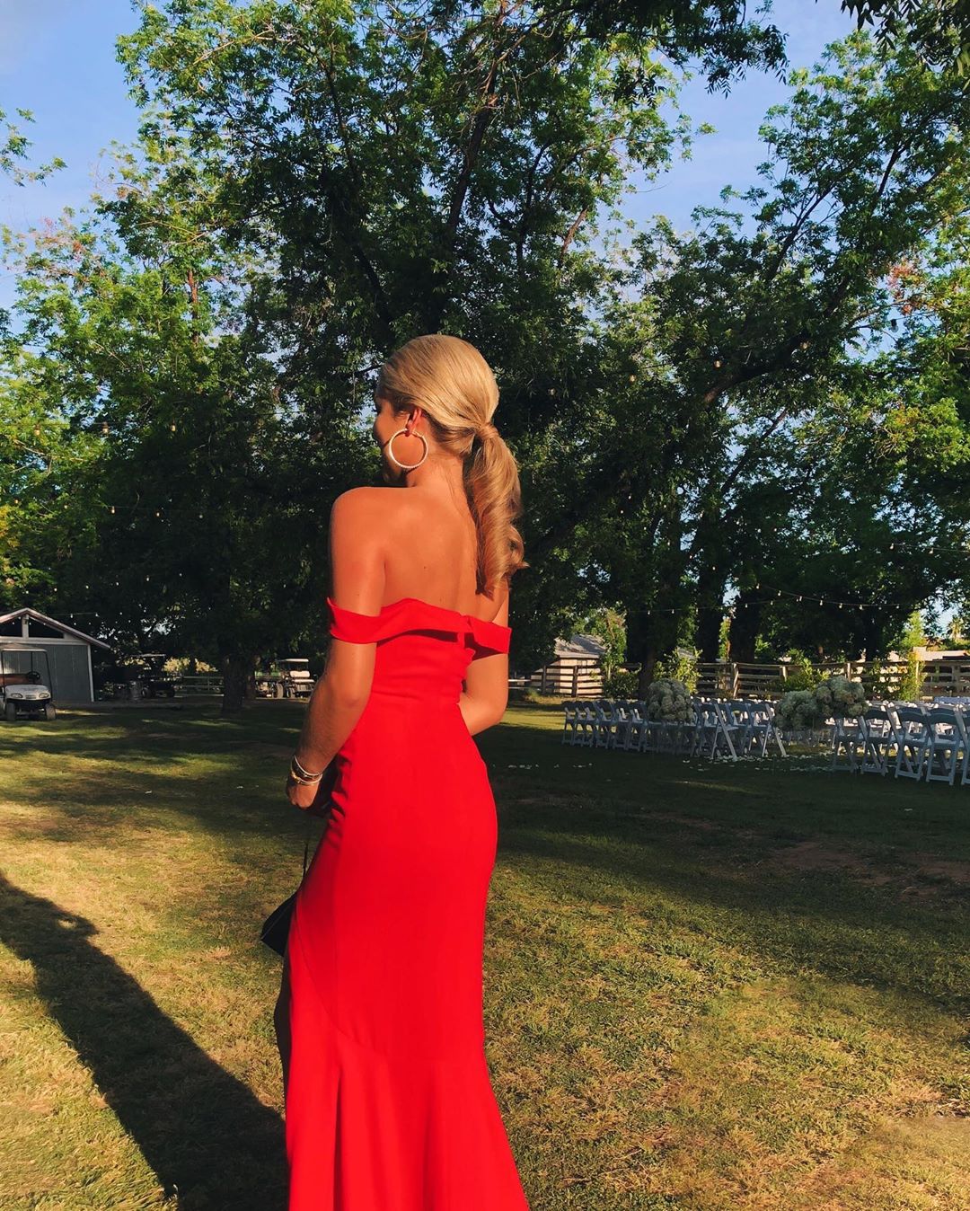 Off the Shoulder Formal Dresses, Mermaid Red Formal Dresses with Slit