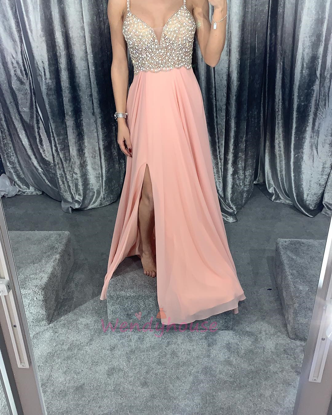 Gorgeous Pink Slit Long Formal Dress