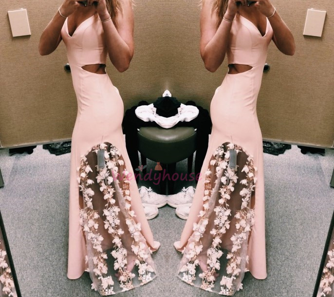 Sexy Mermaid Pink Formal Dress with Side Cut Outs