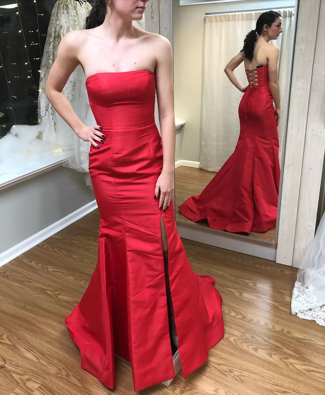 Elgeant meriad burgundy evening dress with strapless and lace up back!