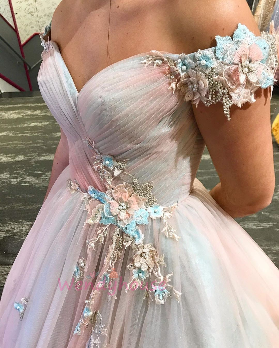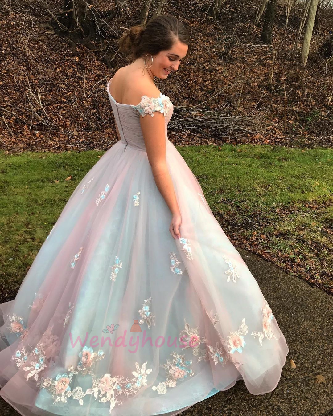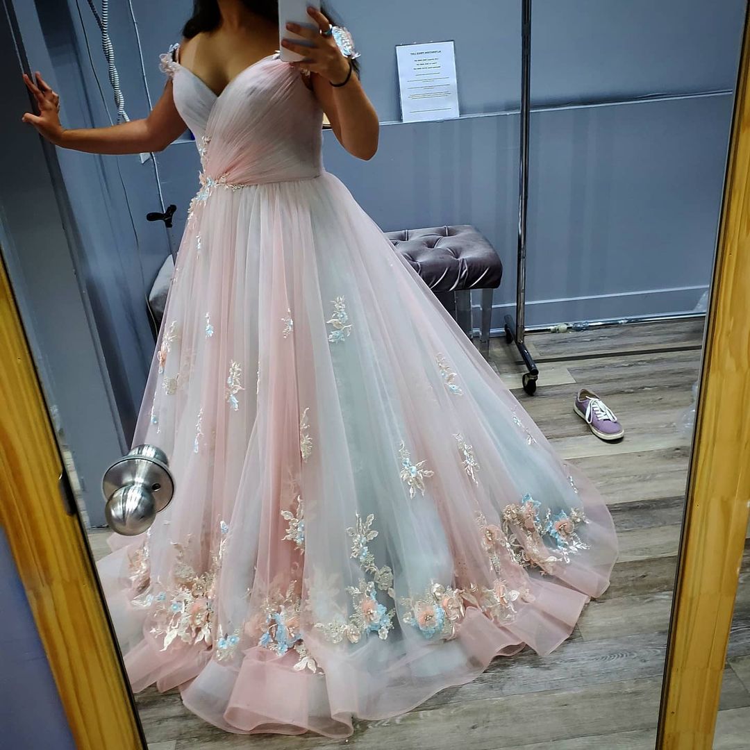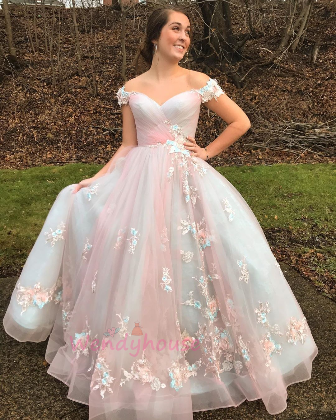 Wendyhouse princess off the shoulder pink prom gown with flowers