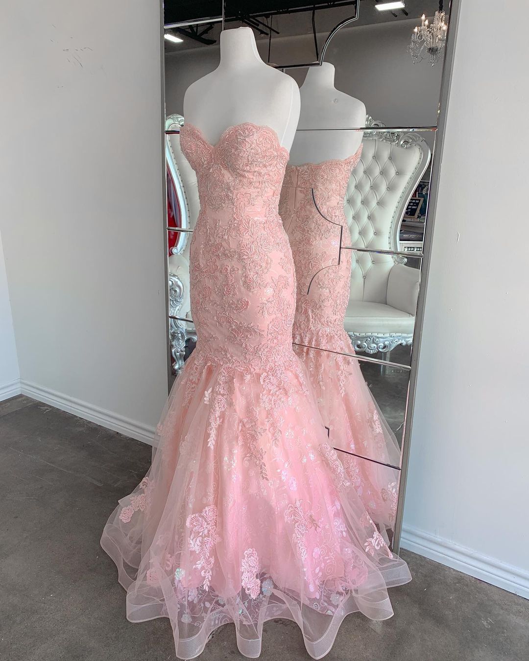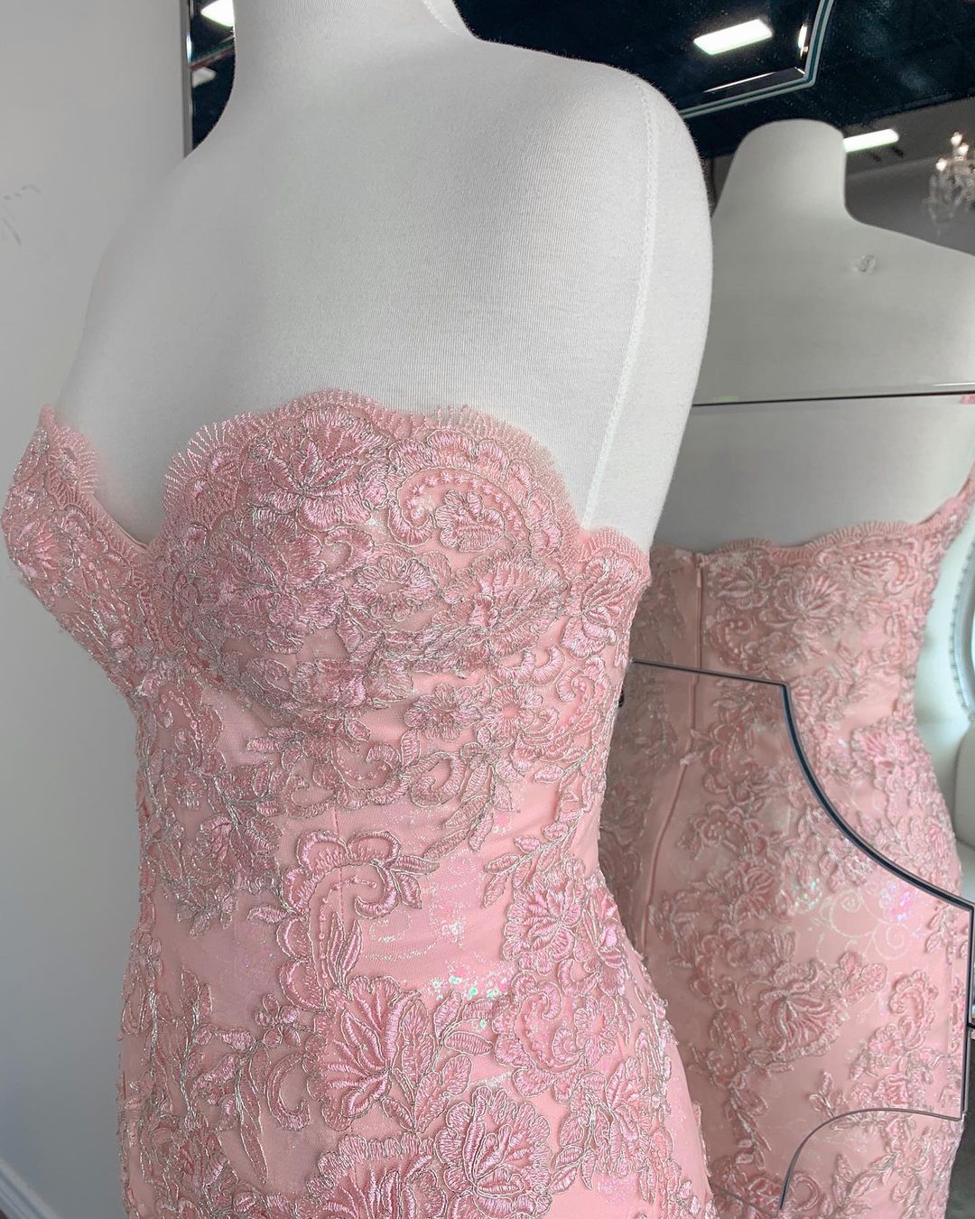 Wendyhouse mermaid pink long prom dress with sweetheart neckline and zip up back.