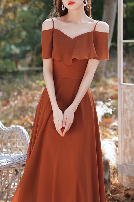 Straps Rust Orange Chiffon Bridesmaid Dress