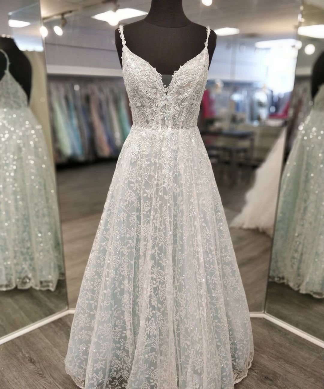 Wendyhouse elegant A-line lace long prom dress with open back.