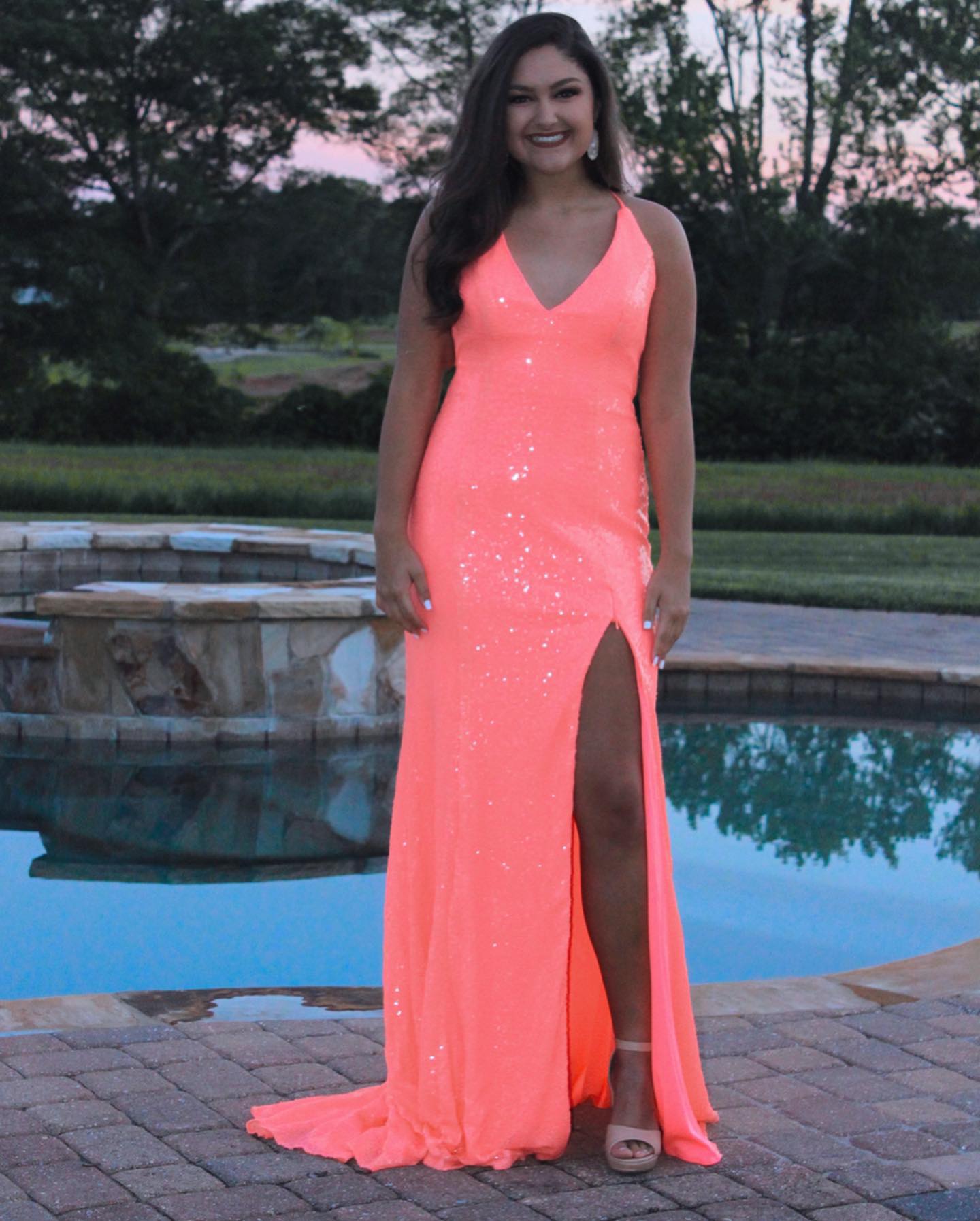 Orange Sequins V Neck Mermaid Long Prom Dress