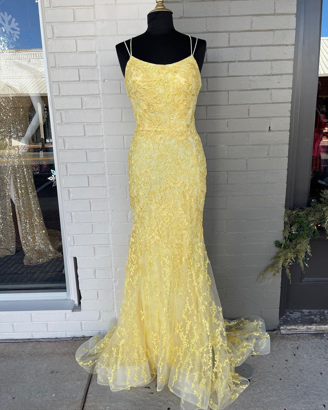 Elegant light blue mermaid prom dress features with spaghetti straps, delicated lace and lace up back.