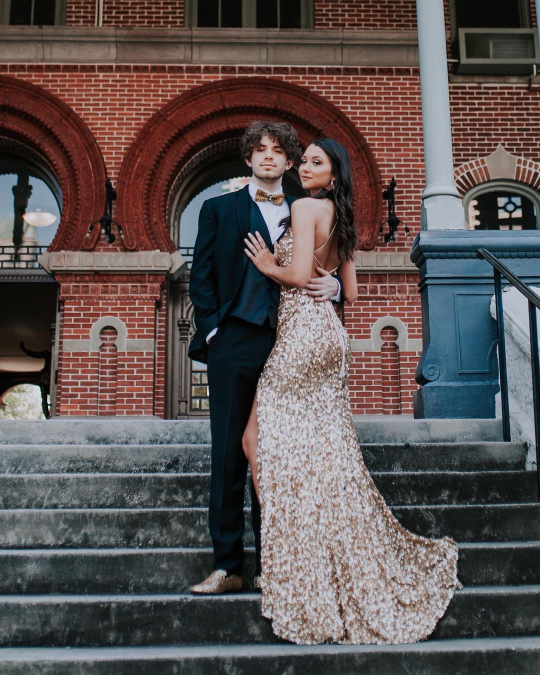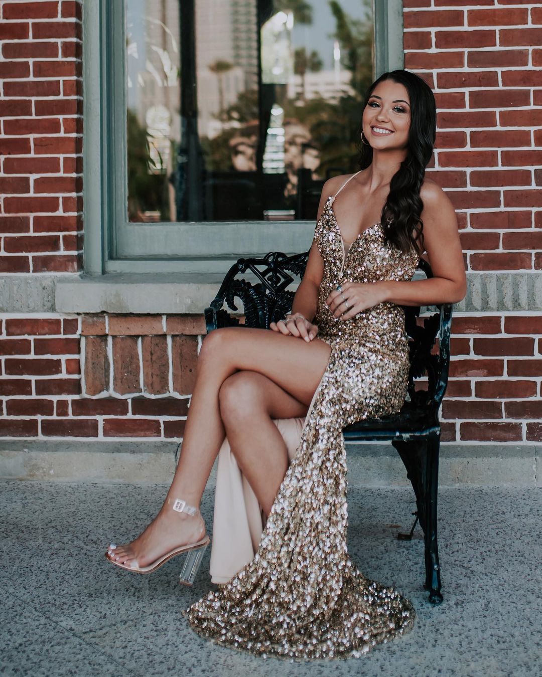 Sparkle Gold Sequin Mermaid Slit Long Prom Dress
