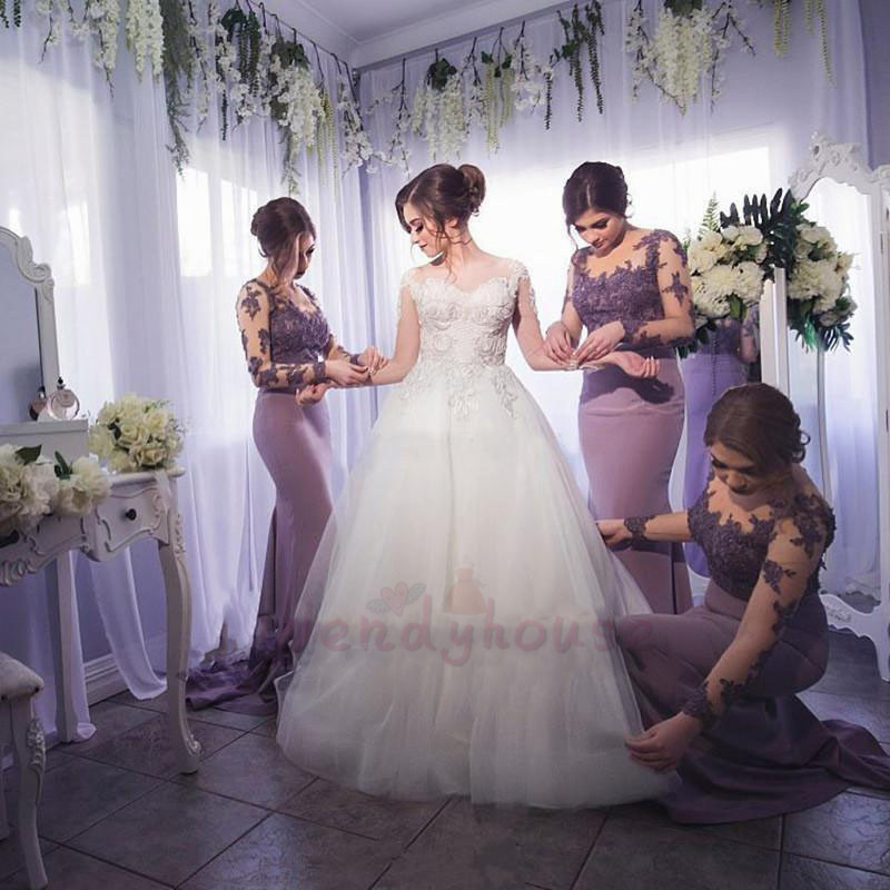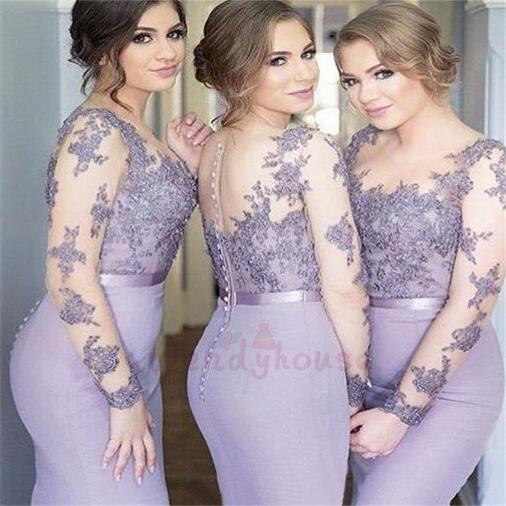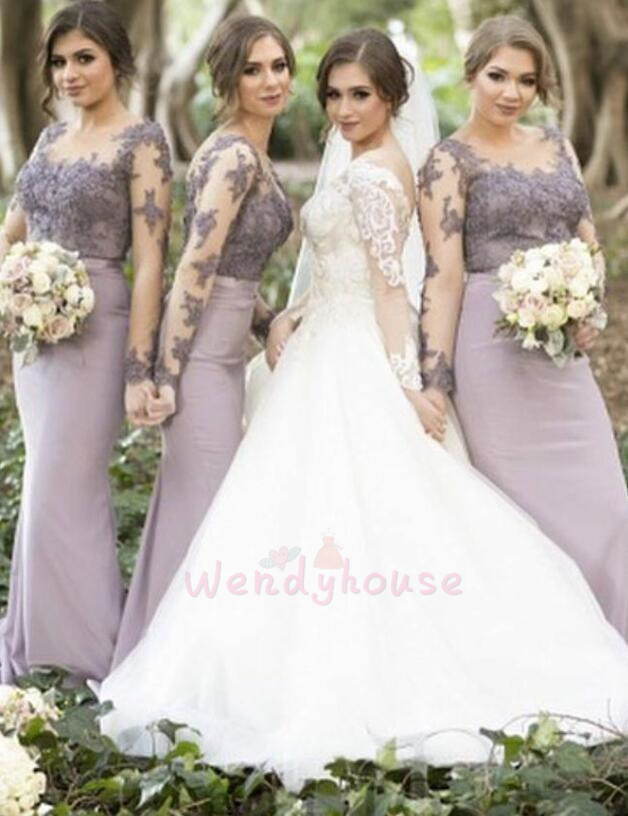 Mermaid Bridesmaid Dress , Long Lavender Bridesmaid Dress,Long Sleeves Bridesmaid Dress