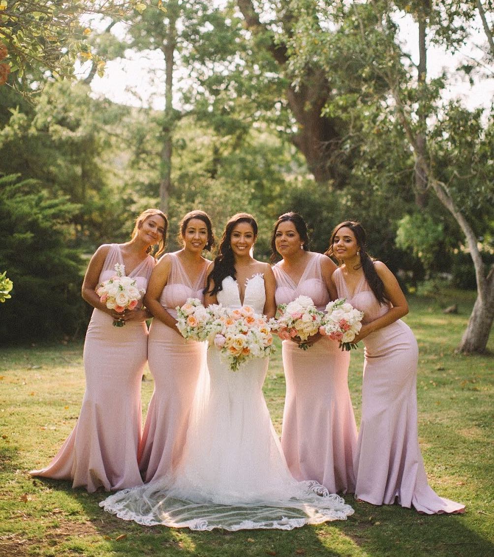 Mermaid Pink Long Bridesmaid Dress