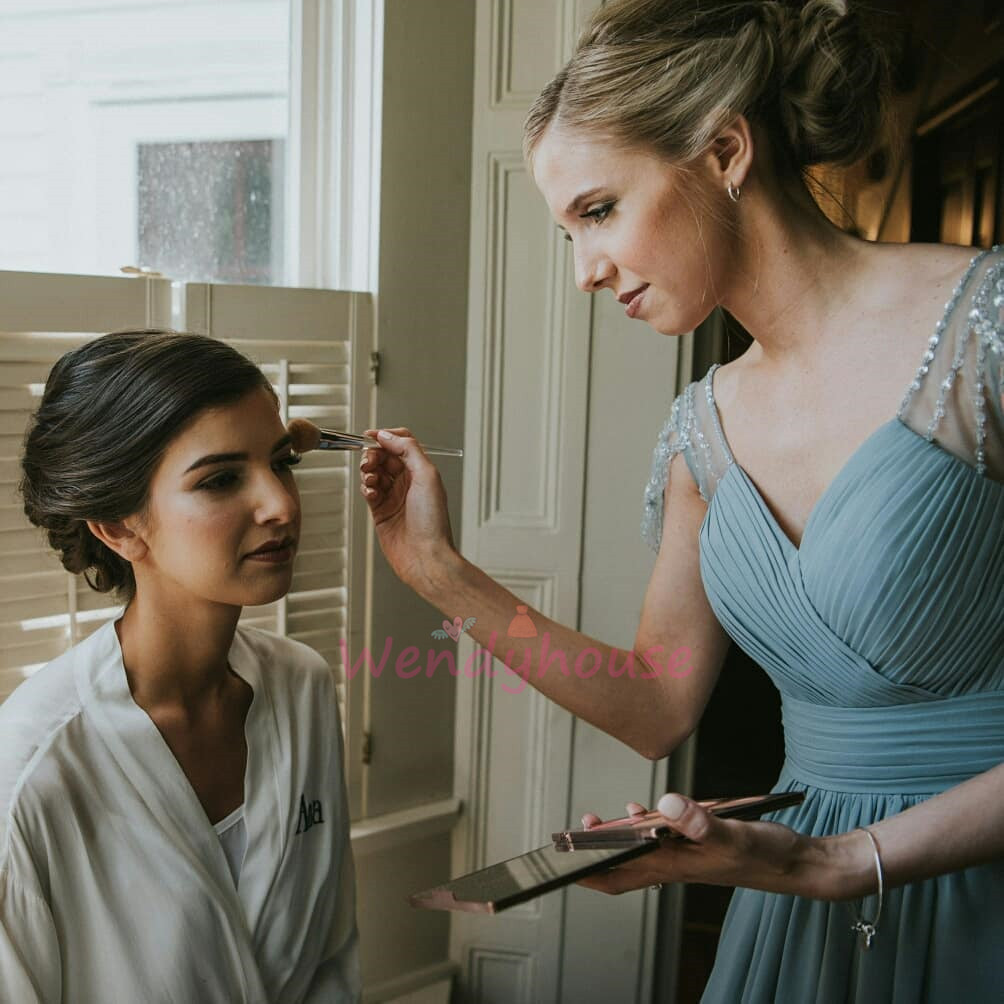 elegant blue long bridesmaid dress, chiffon long bridesmaid dress