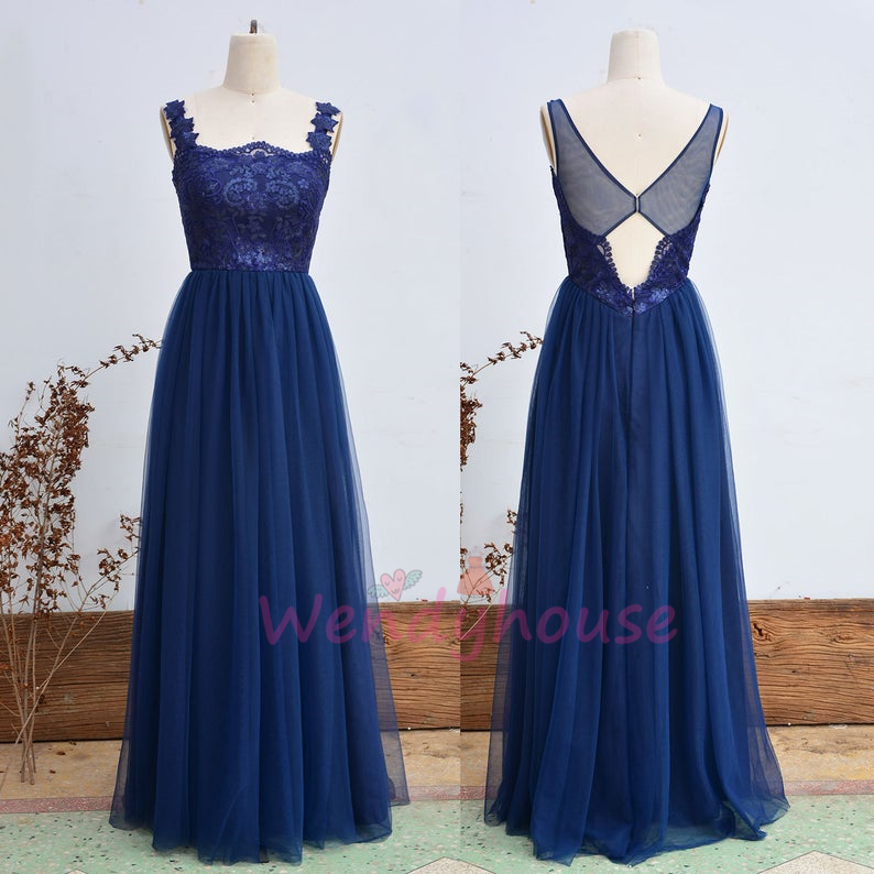Square Neckline Royal Blue Tulle Bridesmaid Dress