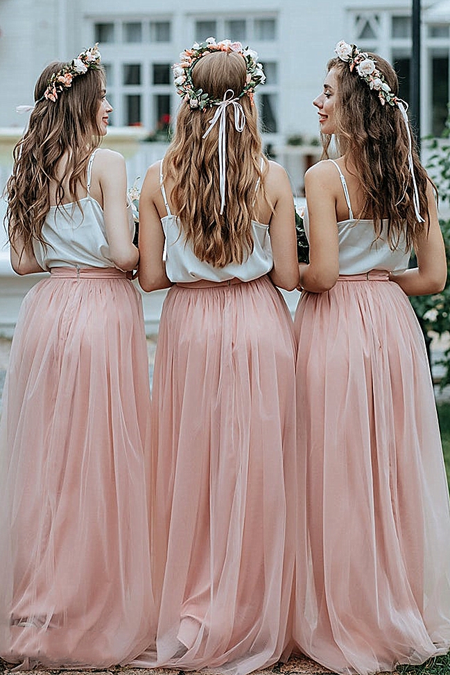 Pink Tulle Skirt and Straps White Top