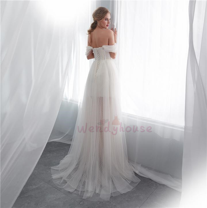 Wedding Dress Long, Ivory Wedding Dress, Off the Shoulder Wedding Dress, Cheap Wedding Dress under 100