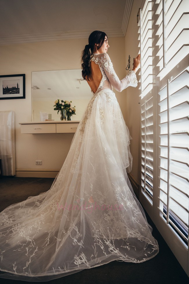 long sleeves wedding dress, heart cutout wedding dress bridal gown