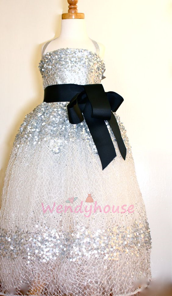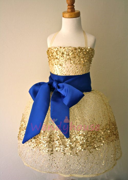 Straps A-line gold flower girl dress with sash. The sash color can be changed. Just email me what color you want. With underlining, it is very comfortable to wear.