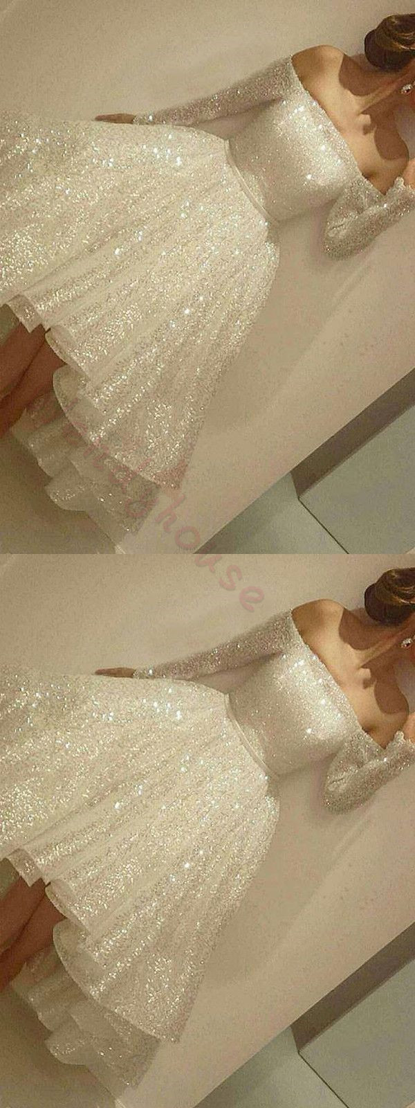 Sparkly Long Sleeves Off shoulder Short Prom Dress