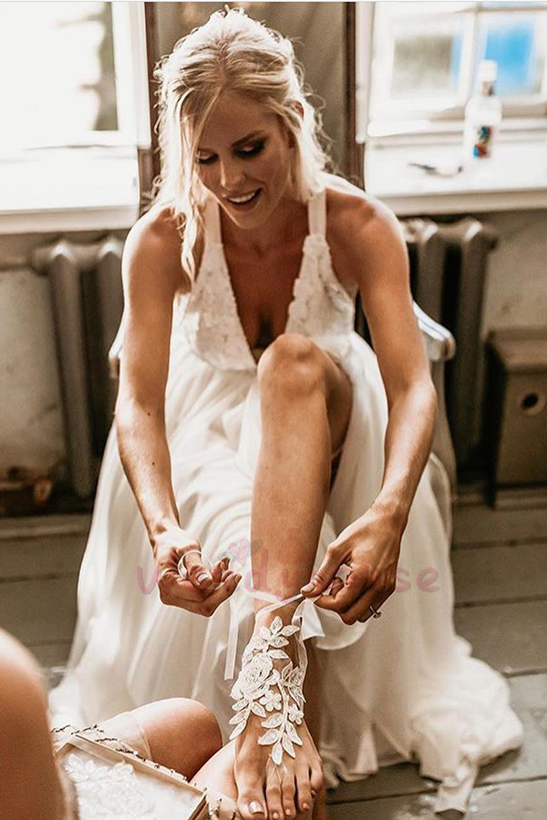Long Wedding Dress,Backless Wedding Dress,Boho Wedding Dress