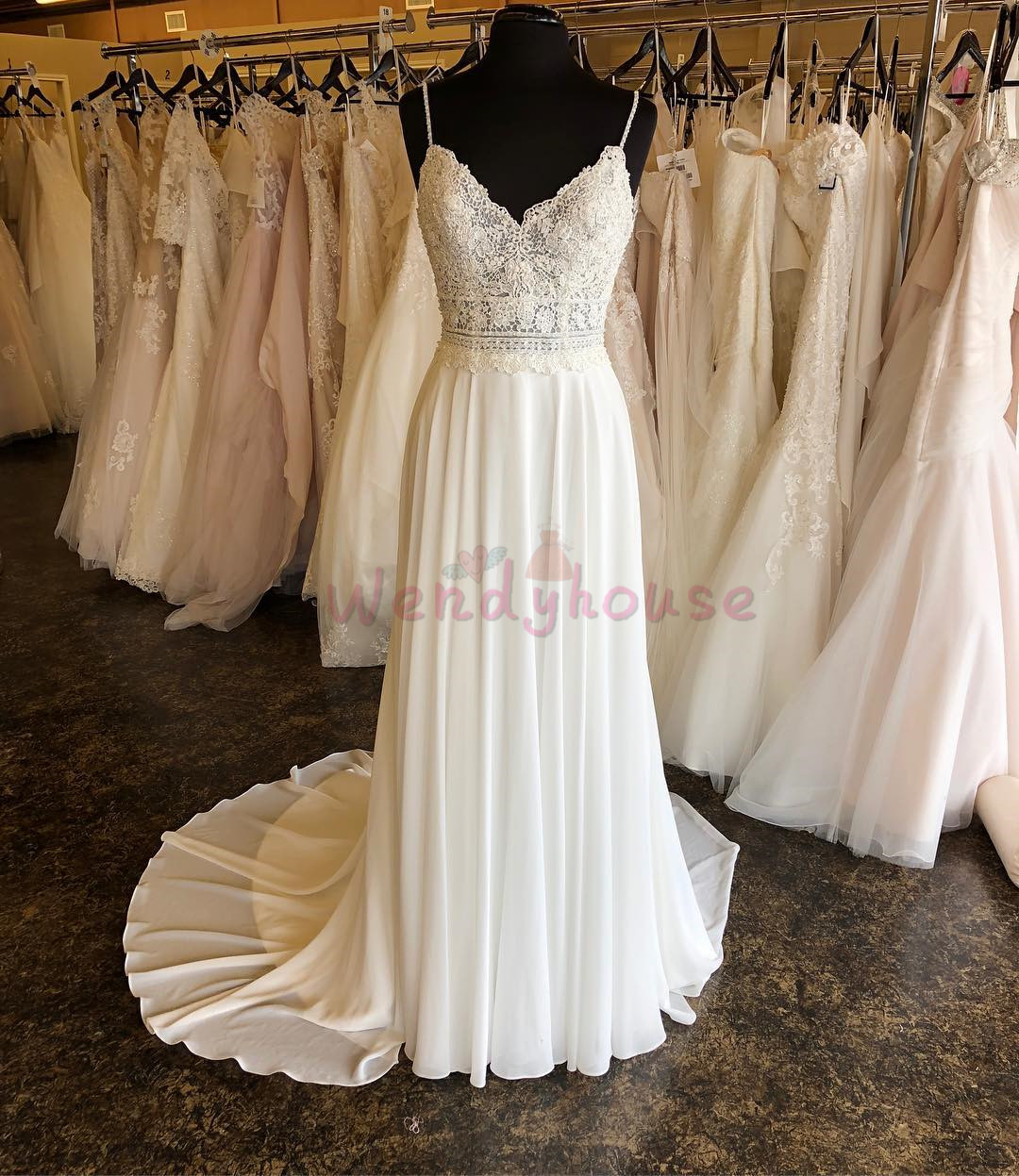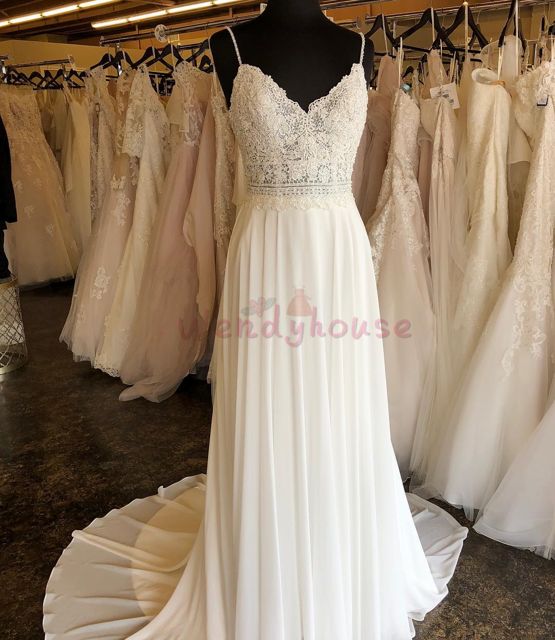Boho Ivory Wedding Dress,Chiffon Beach Wedding Dress,Long Wedding Dress with Train