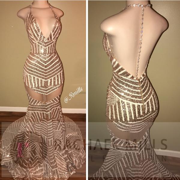 Mermaid Rose Gold Sequined Evening Dress, 2019 Sexy Prom Dress
