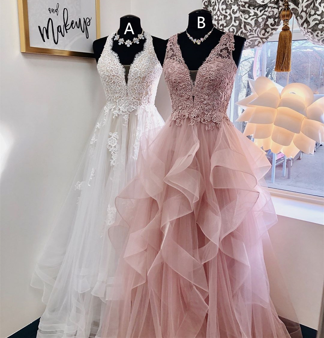 2019 Princess Prom Dress, Long Prom Dress, Pink Prom Dress, White Prom Dress, Graduation Dress