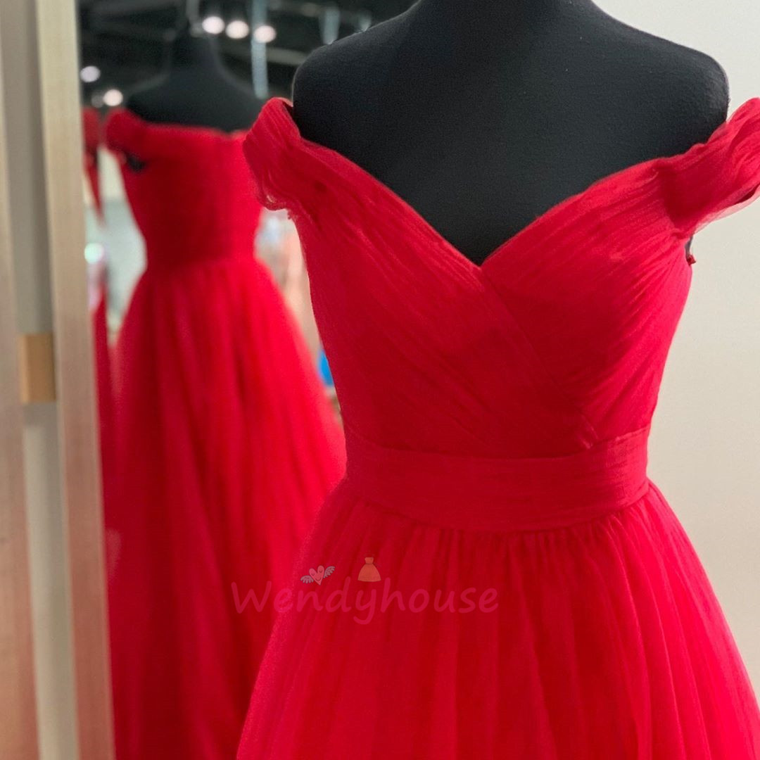 red formal dress, off the shoulder prom dress, red prom dresses, ball gown