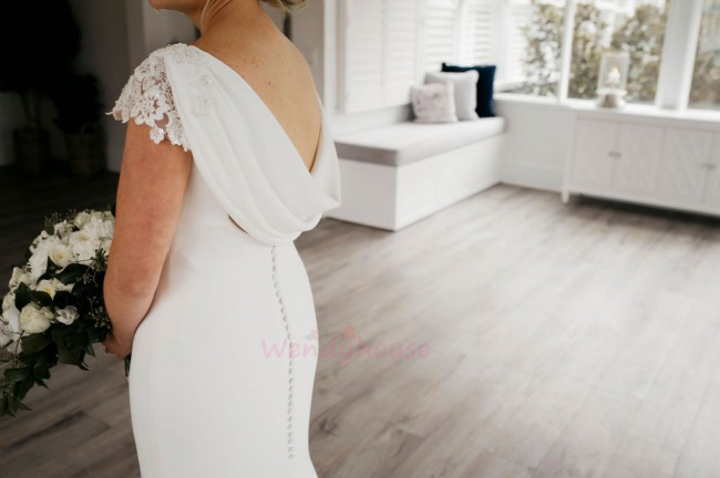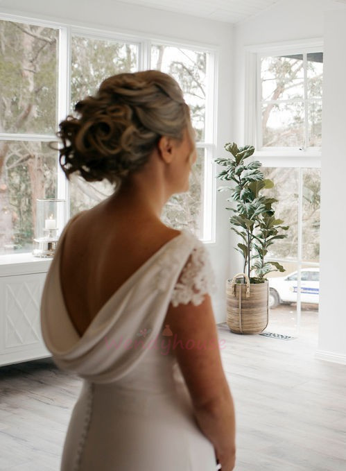 Elegant Cap Sleeves Ivory Wedding Dress with Cowl Back