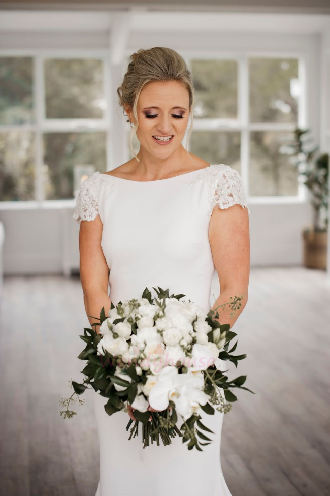 simple wedding dress, ivory wedding dressm cap sleeves wedding dress, cowl back wedding dress