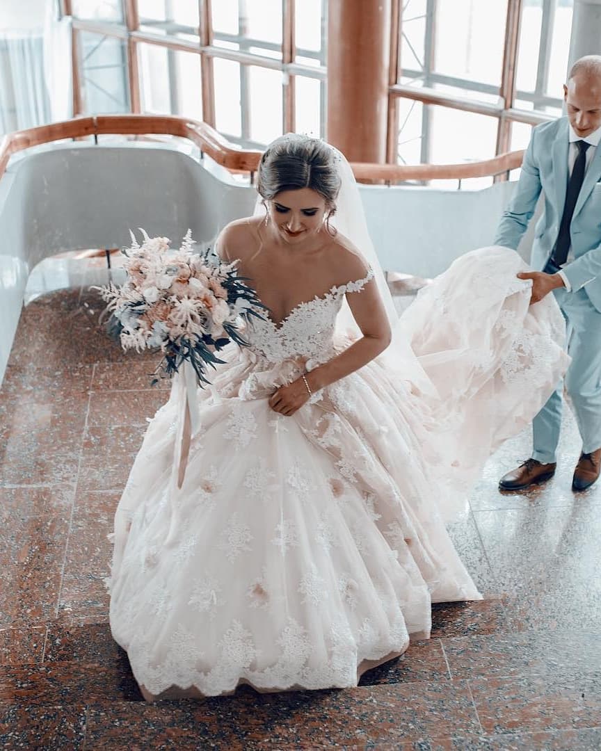 Off the Shoulder Ivory Lace Long Wedding Dress