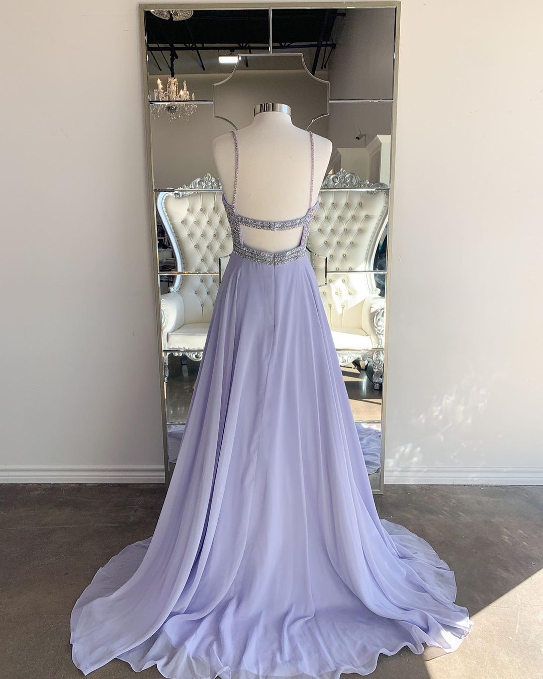 Wendyhouse lavender chiffon long prom dress with beaded bodice and oepn back