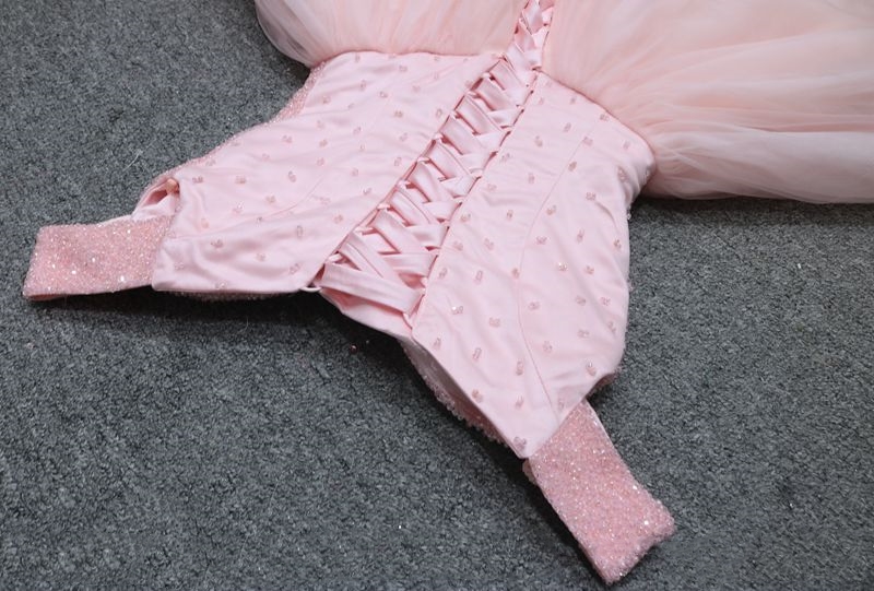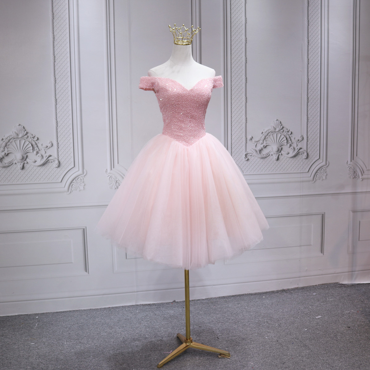 Wendyhouse princess off the shoulder short pink party dress with pearls and lace up back