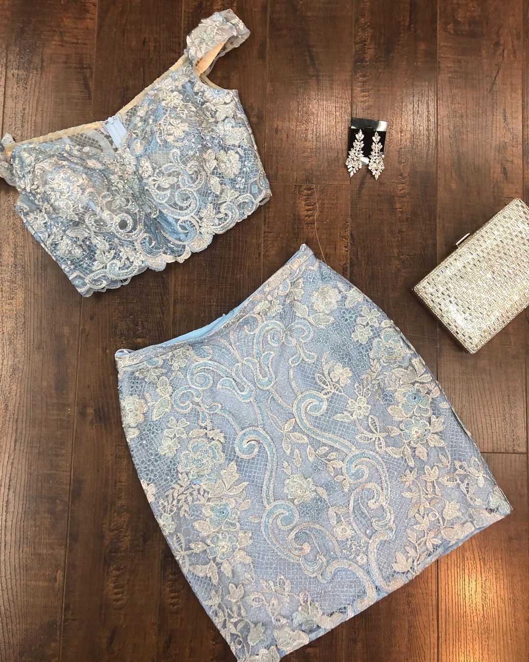 Two Piece Off the Shoulder Light Blue Party Dress