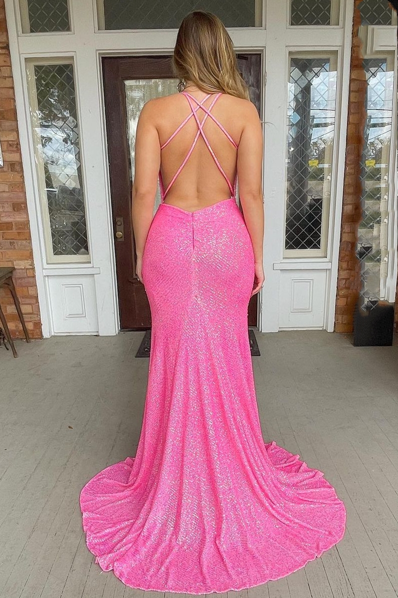 Stunning Mermaid Pink Sequin Long Formal Dress