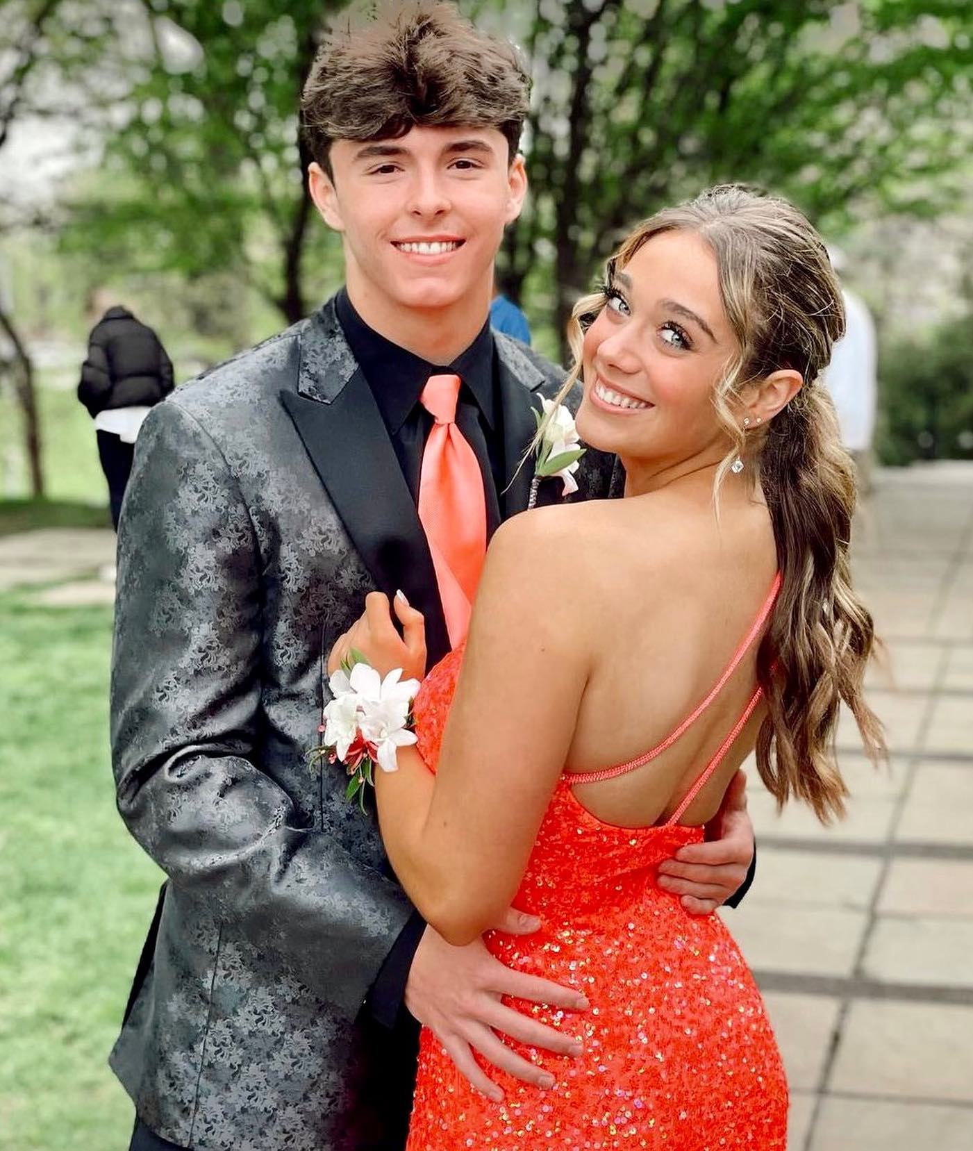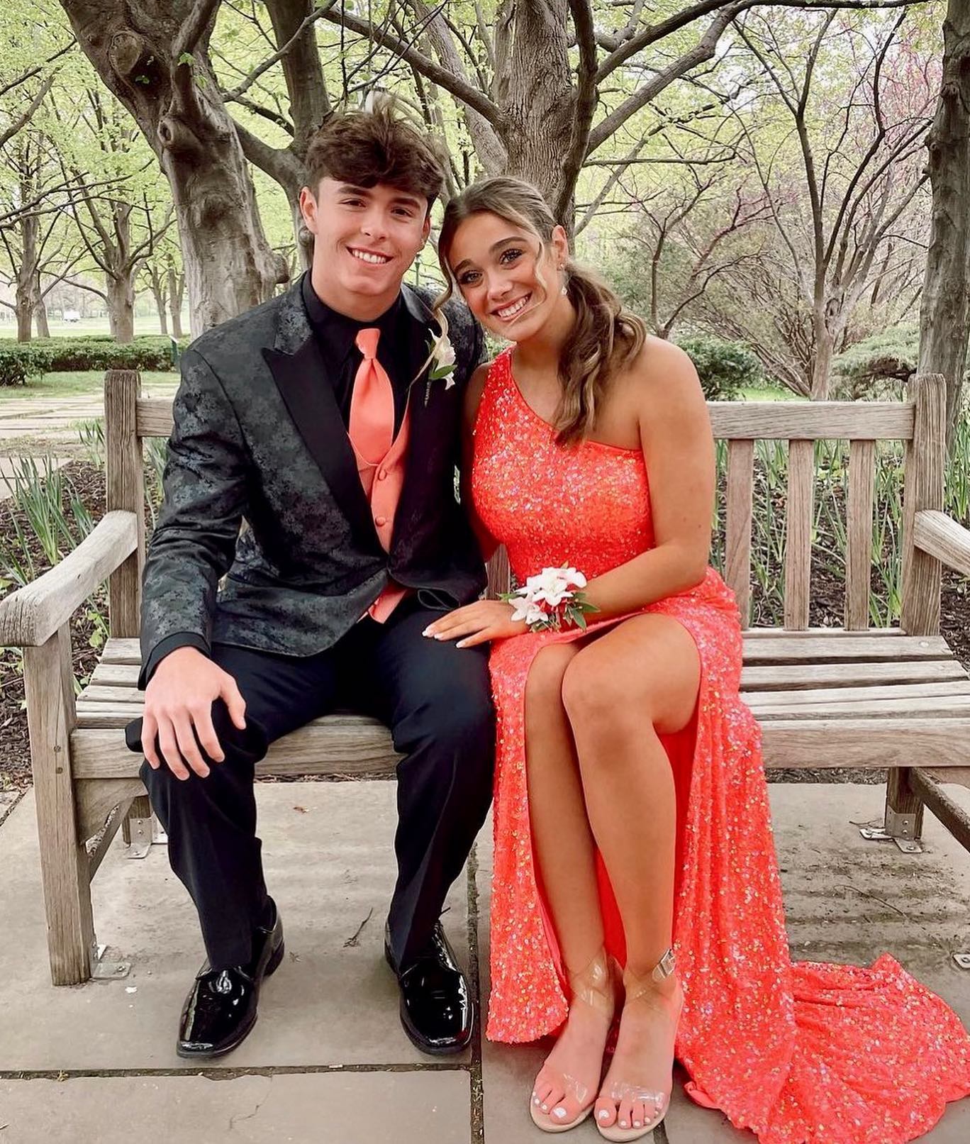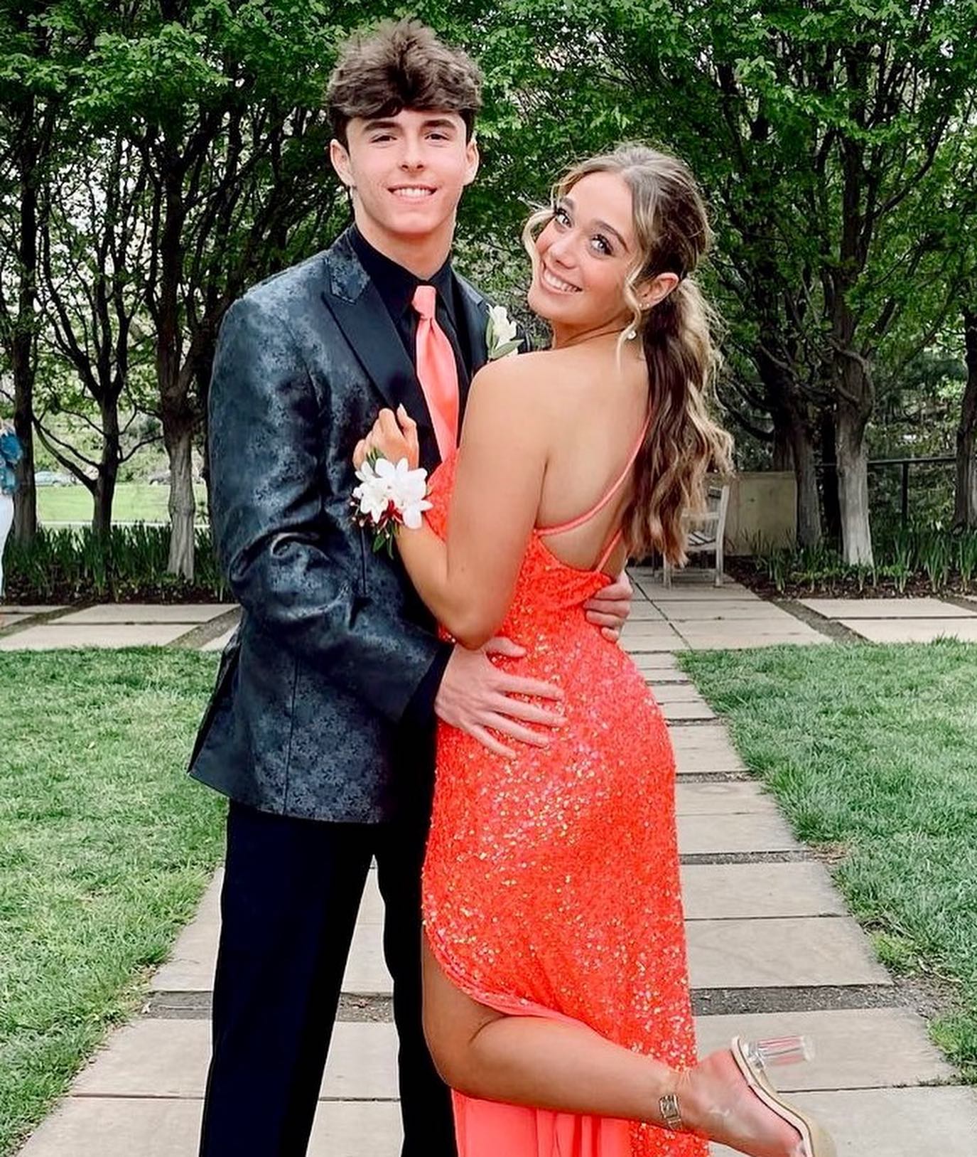 Stunning orange sequin mermaid long formal dress features one shoulder, slit and zip up back.