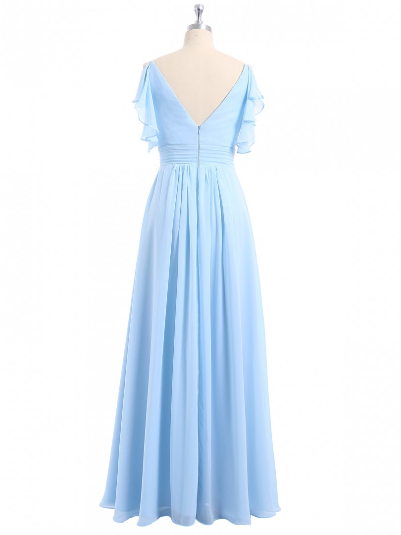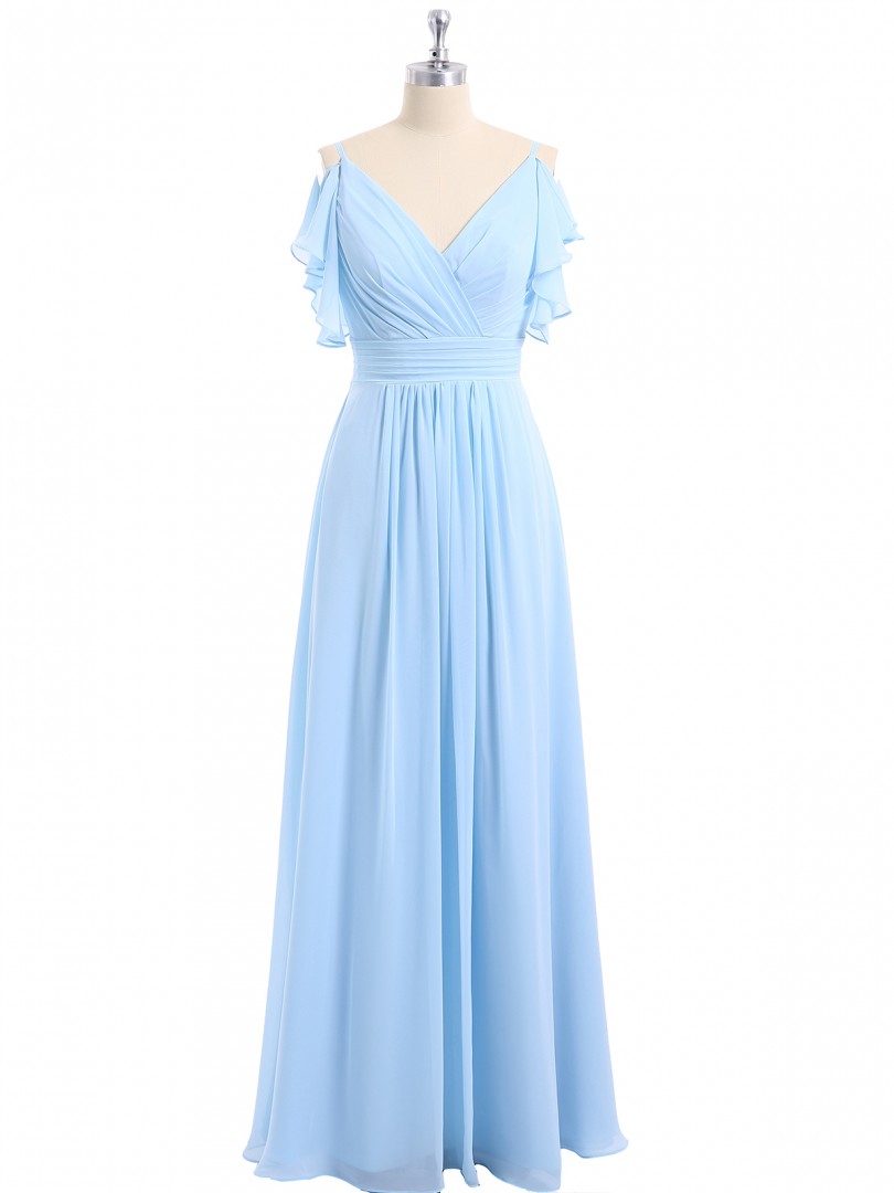 Sky Blue Chiffon Pleated Long Bridesmaid Dress