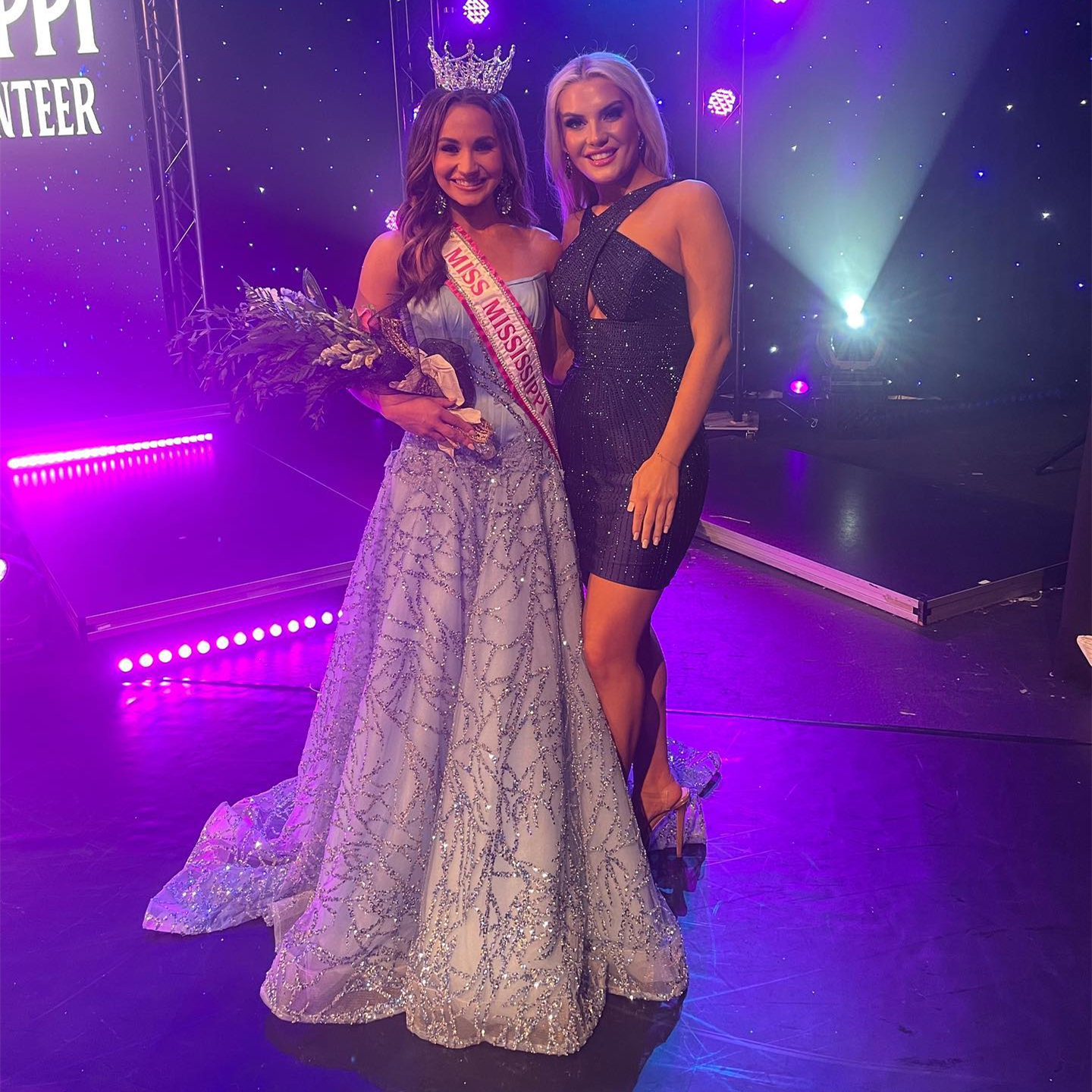 This dark blue homecoming dress features a crossed halter neckline, and a sheath silhouette full of beaded detail.