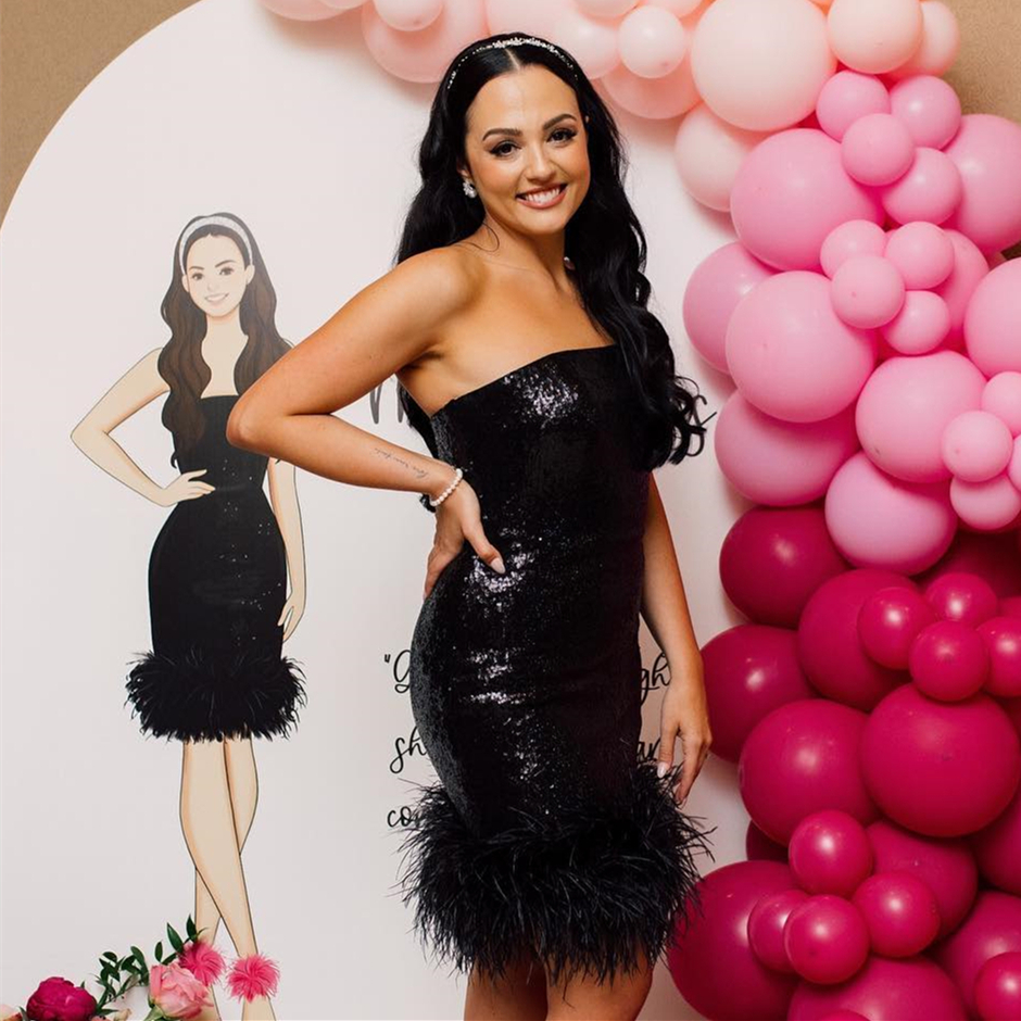 Black Strapless Sheath Sequins Homecoming Dress with Feathers